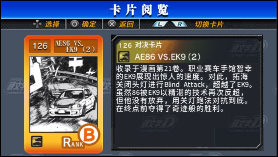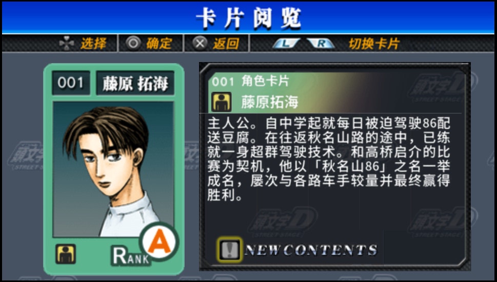 补丁说明PSP 头文字D 公路传说 汉化补丁下载与说明下载 汉化补丁安装补丁需要你先准备好游戏原版(日版)ISO 镜像。PPSSPP 高清贴图包配合 PPSSPP 模拟器使用,直接使用「载入游戏」选择压缩包进行安装,不需要解压压缩包。 原日版镜像信息版本: v1.01 MD5: 225f1f56c37097c7a11ecaddd52abbf1 SHA1: 637150702ac7e0418fe58cfca71c948da2746fa2 补丁内容 更新记录 语音字幕 实现游戏内外挂语音字幕 语音字幕默认开启,可以按一下 SELECT 键关闭;按住 SELECT 键再按十字方向键可以调整字幕的大小和位置。 剧情对话文本 卡片描述 全模式贴图汉化 英文可变间距调整 游戏本身字符使用固定间距,补丁加入插件 Hook 动态修改字符间距。 在线补丁工具在线 Xdelta 补丁工具